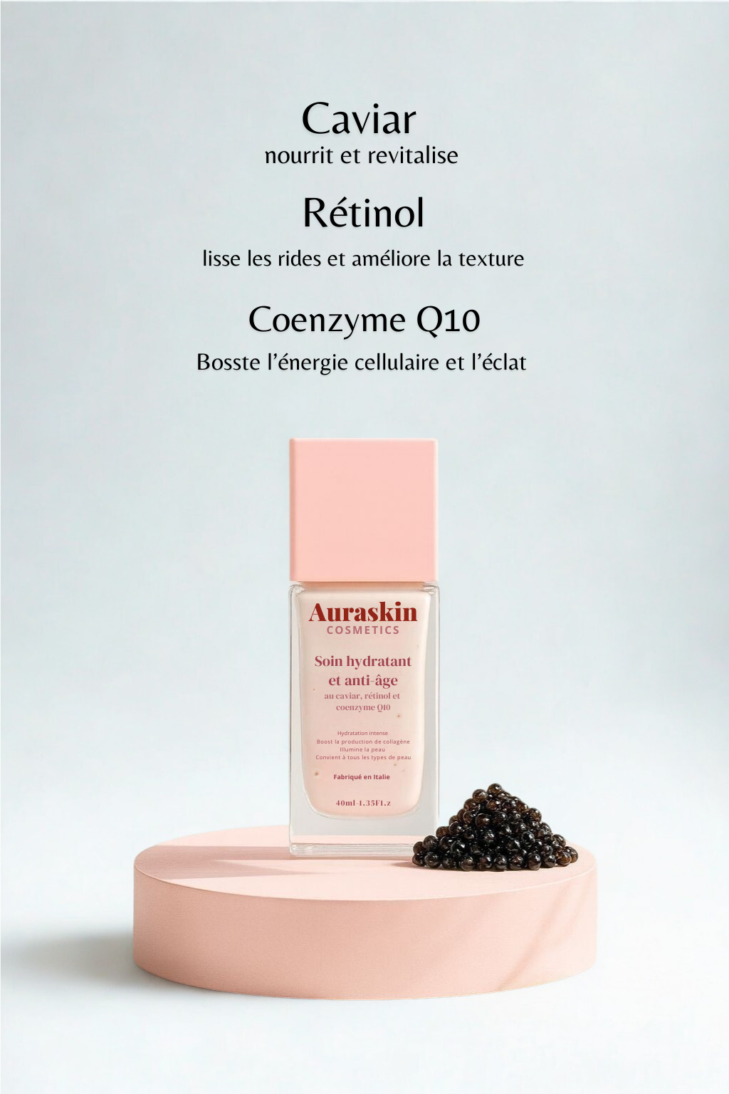 Soin hydratant et anti-âge au caviar, rétinol coenzyme Q10